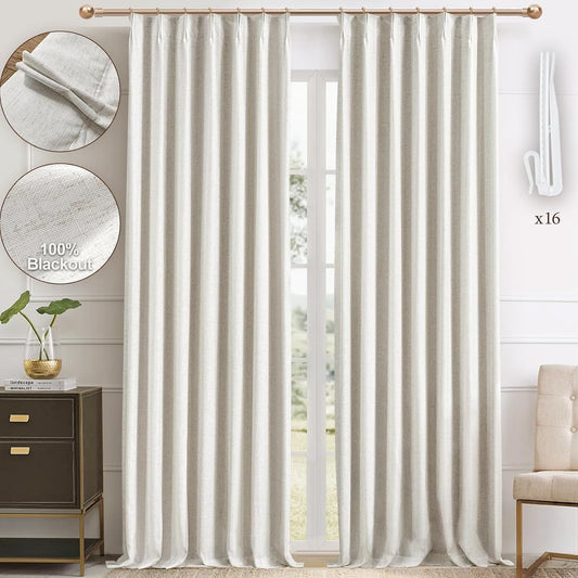 Galenzoov 2 Panels Linen Blend Pinch Pleated Curtains for Home